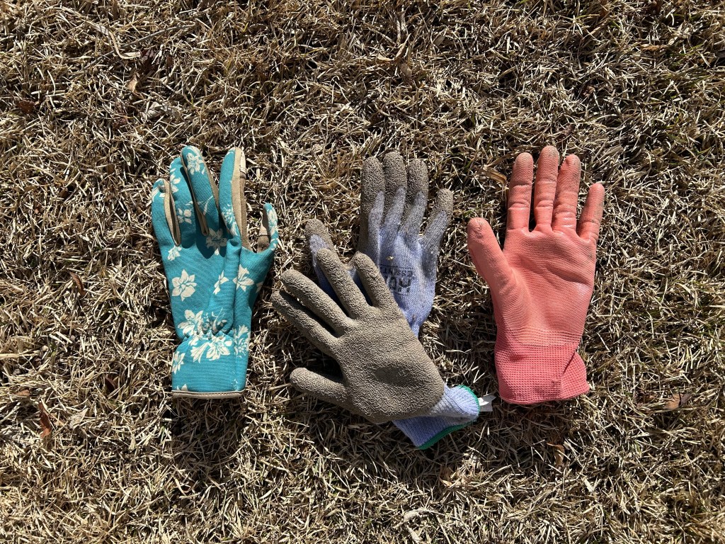 The cheaper the glove, the more likely they are to fall apart easily. The more easily they fall apart, the more often you’ll have to replace them, which adds up. Gardening gloves range from a couple dollars a pair all the way up to $20 a pair. I spend about $5 per pair on the ones I like best (center) and they last me a couple weeks of continuous gardening before they get holes.