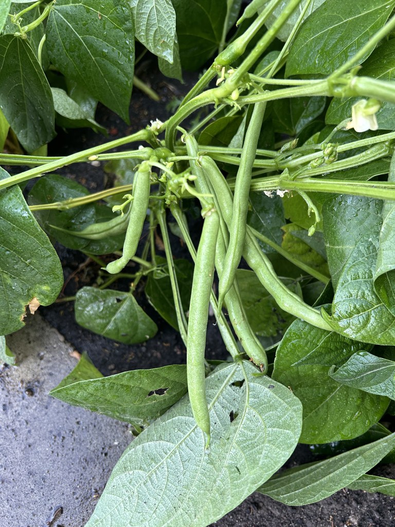 Top: beans and cucumbers flourishing