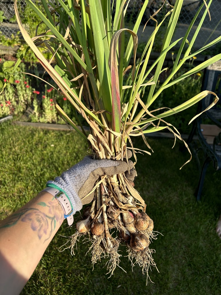 Garlic planted last fall and harvested at the end of July